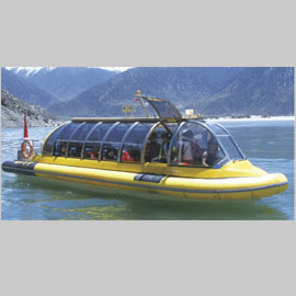 船體材質(zhì)玻璃鋼,具有強(qiáng)度高、重量輕、耐腐蝕、不怕日曬雨淋、色彩艷麗、外型美觀的特點。艙內(nèi)牽引電機(jī),電瓶驅(qū)動,沒有污染,可由游客自行駕駛。